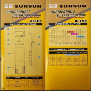 Filtro interno para acuario Sun Sun HJ-311B General Marca: Sun Sun Número de modelo: HJ-311B Tipo: Interno Esponja Tipo de